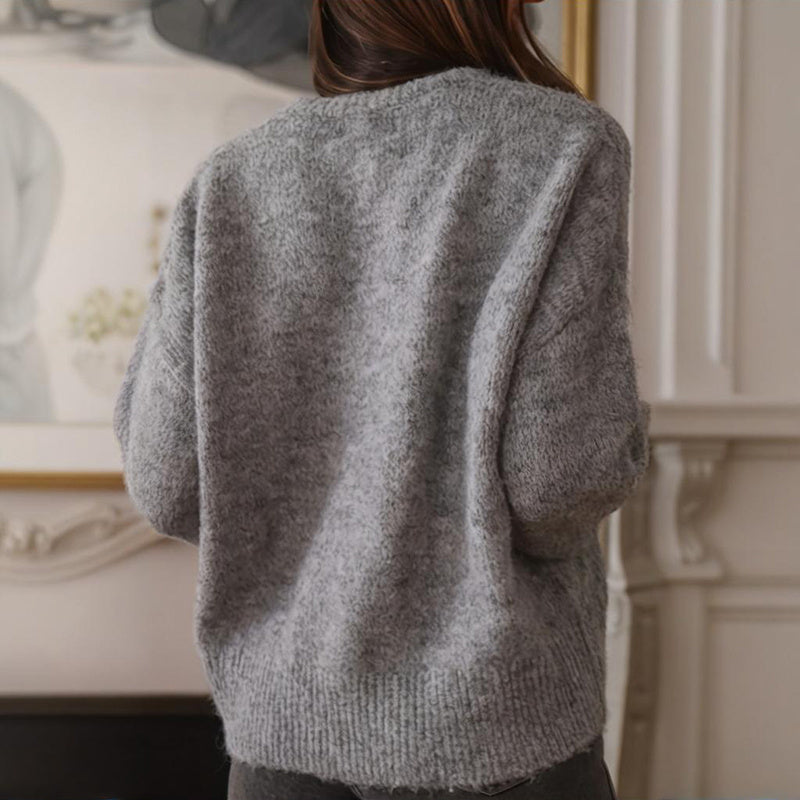 Women's Ruffle Cuff Sweater - Soft Round Neck Long Sleeve Casual Top For Chic Everyday Outfits